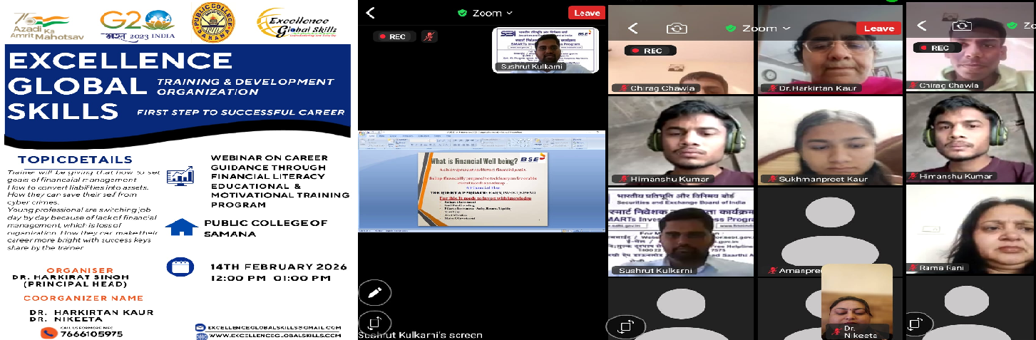 ਮੈਂ ਤੁਹਾਡਾ ਪਬਲਿਕ ਕਾਲਜ ਸਮਾਣਾ ਦੀ ਅਕਾਦਮਿਕ ਪਰੰਪਰਾ ਵਿੱਚ ਸਵਾਗਤ ਕਰਦਾ ਹਾਂ। 1969 ਵਿੱਚ ਸਥਾਪਿਤ ਇਹ ਕਾਲਜ ਪਿਛਲੇ ਪੰਜ ਦਹਾਕਿਆਂ ਤੋਂ ਸਮਾਣਾ ਅਤੇ ਆਸ-ਪਾਸ ਦੇ ਖੇਤਰਾਂ ਵਿੱਚ ਗੁਣਵੱਤਾਪੂਰਕ ਸਿੱਖਿਆ ਰਾਹੀਂ ਵਿਦਿਆਰਥੀ ਦਾ ਬਹੁਪੱਖੀ ਵਿਕਾਸ ਵਿੱਚ ਅਹਿਮ ਭੂਮਿਕਾ ਅਦਾ ਕਰ ਰਿਹਾ ਹੈ। ਸਾਡਾ ਟੀਚਾ ਸਿਰਫ਼ ਡਿਗਰੀ ਦੇਣਾ ਨਹੀਂ, ਸਗੋਂ ਵਿਦਿਆਰਥੀ ਨੂੰ ਇੱਕ ਸਮਰੱਥ, ਜ਼ਿੰਮੇਵਾਰ ਅਤੇ ਨੈਤਿਕ ਭਰਪੂਰ ਸੰਪੂਰਨ ਨਾਗਰਿਕ ਬਣਾਉਣਾ ਹੈ ਤਾਂ ਕਿ ਉਹ ਸਮਾਜ ਦੀ ਤਰੱਕੀ ਵਿਚ ਅਹਿਮ ਯੋਗਦਾਨ ਪਾ ਸਕਣ। ਅਸੀਂ ਸਿੱਖਿਆ ਦੇ ਅਸਲ ਮੰਤਵ ਦੀ ਪੂਰਤੀ ਲਈ ਸਮਰਪਿਤ ਹਾਂ ਜਿੱਥੇ ਗਿਆਨ ਦੇ ਪ੍ਰਸਾਰ ਦੇ ਨਵੇਂ ਰਾਹਾਂ ਬਾਰੇ ਜਾਣੂ ਕਰਵਾਉਣਾ ਸਾਡਾ ਮੁੱਖ ਕਾਰਜ ਹੈ।